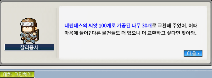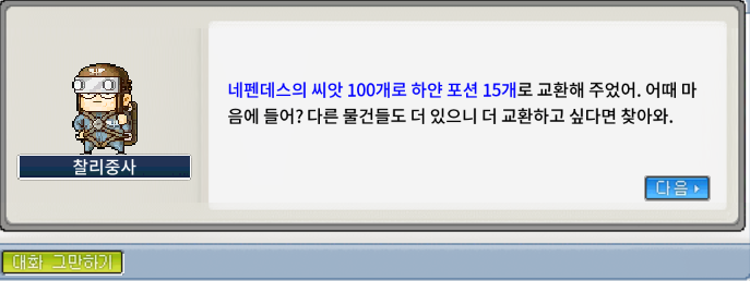 [메이플랜드]메랜 찰리중사와 기싸움 - 네펜데스의 씨앗 600개 교환하기(3일차) 오늘은 과연..?